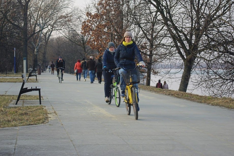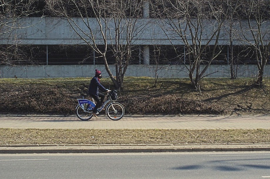 Jeszcze kilka tygodni temu w ciepłych ciuchach, teraz już można w tshircie. Cieszy masowo używany rower miejski Veturilo. :)